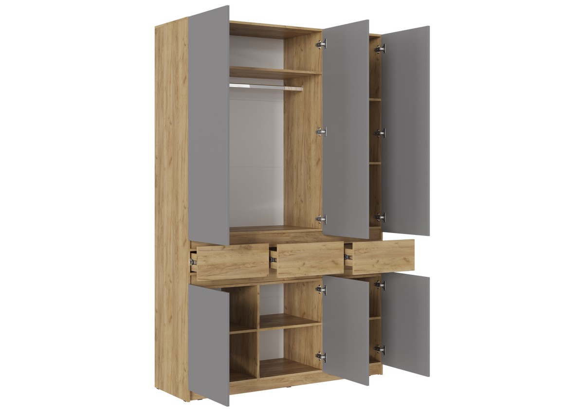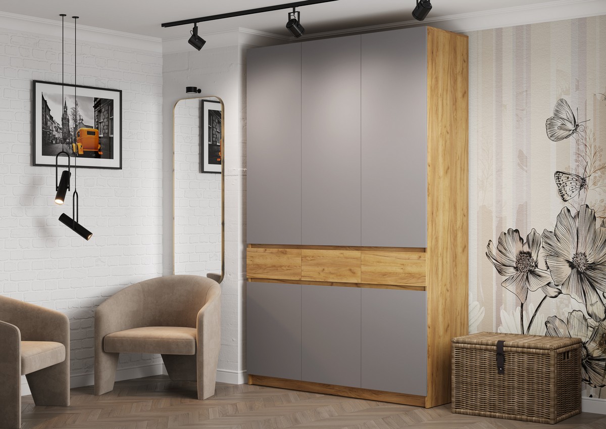 Шкаф трехстворчатый «Бостон ШК-002» (дуб крафт золотой/ЛДСП серый шифер)