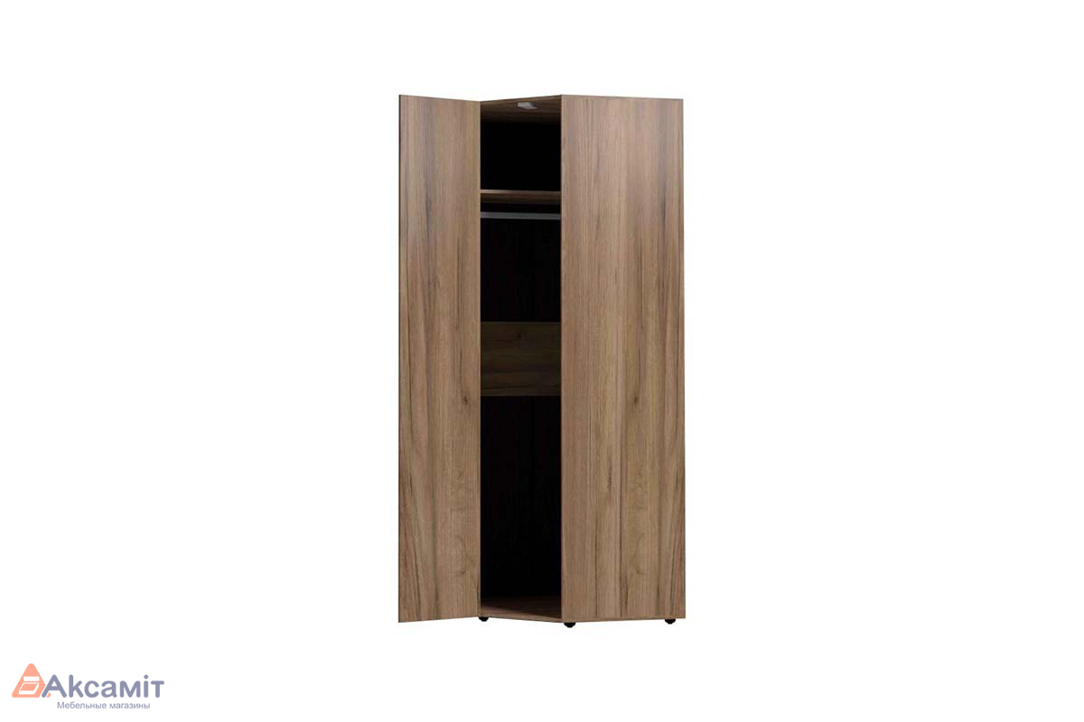Отлично организовать пространство в маленькой спальне поможет угловой шкаф. Гладкие фасады и натуральный декор шкафа привнесут в комнату особый уют и теплоту. Стационарная штанга и полноценный стеллаж для белья внутри способствуют аккуратной организации вещей. Шкаф оснащен беспроводным светодиодным светильником, который включается при открывании двери. Это особенно удобно, если нужно найти в шкафу вещи, не потревожив близких. Легкая установка на магнитное крепление - не требует сверления, прокладывания провода, подключения к сети. Шкаф обязательно крепится к стене на подвесы, а компенсировать неровности пола можно, благодаря регулируемым опорам.