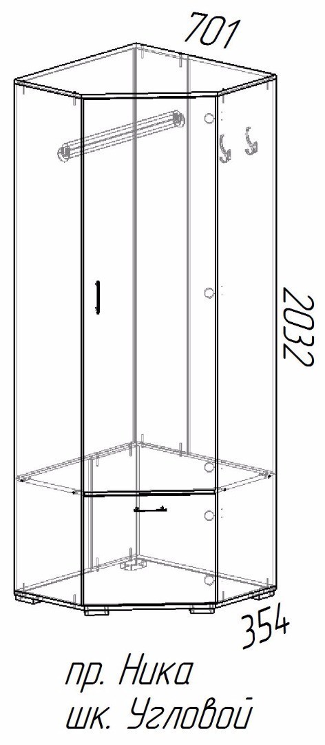 Размер (ШхВхГ): 69х208х38 см. Материал: МДФ покрытый плёнкой, ЛДСП.
