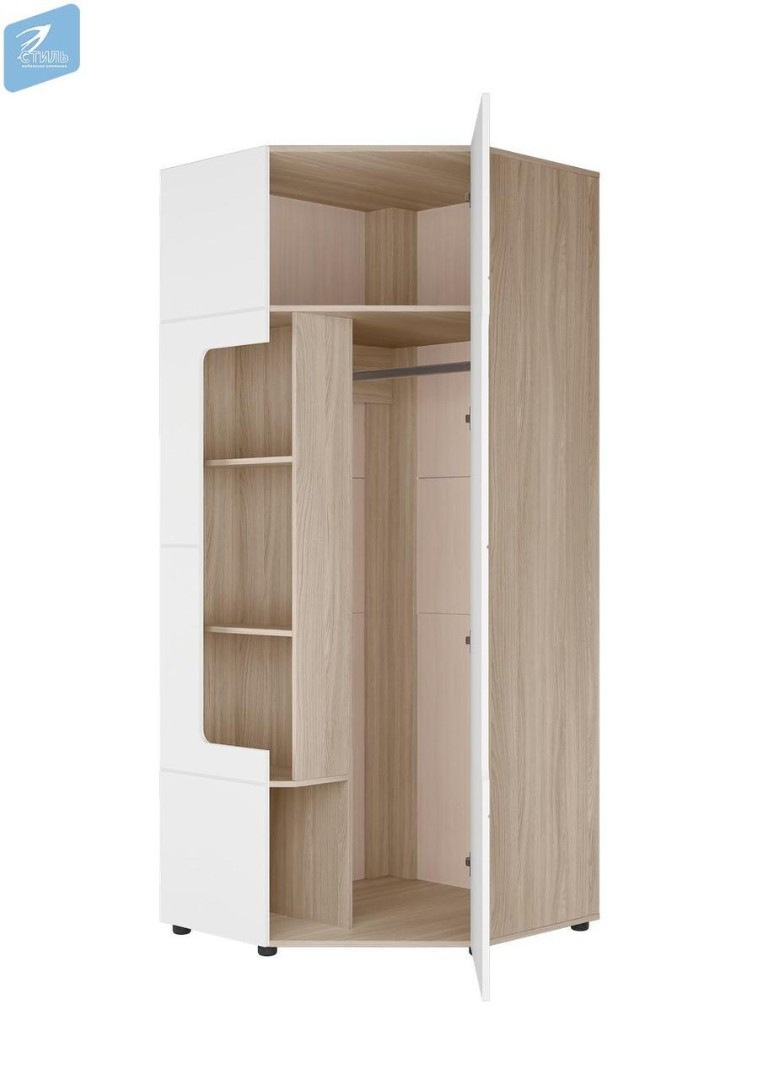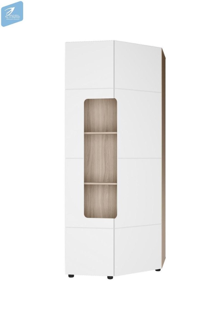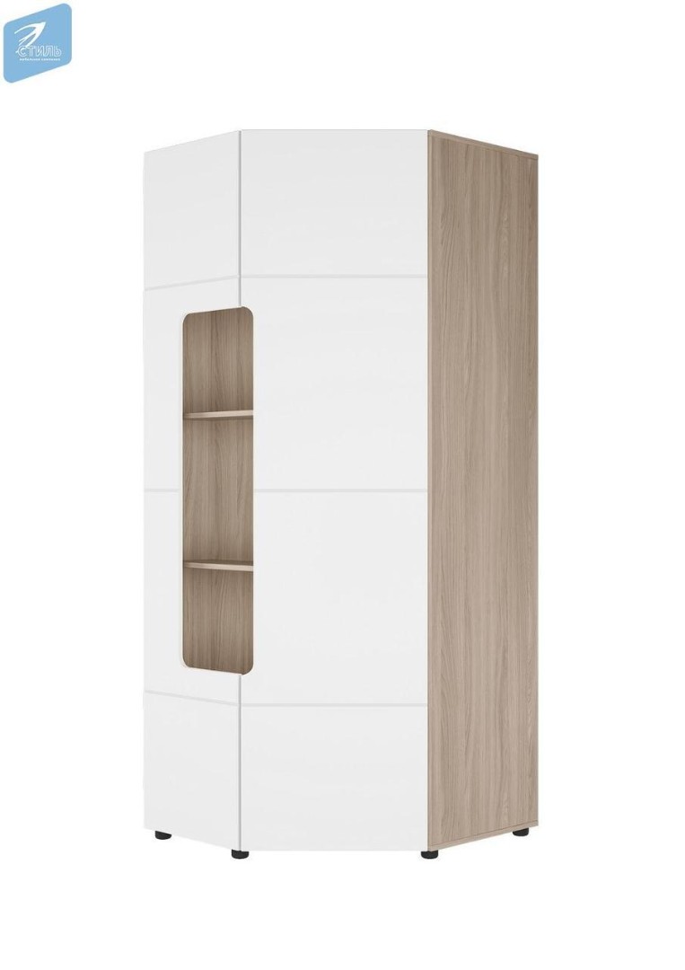 Шкаф угловой «Палермо-3» с открытыми полками (Шимо светлый/Белый глянец) Стиль ШК-014