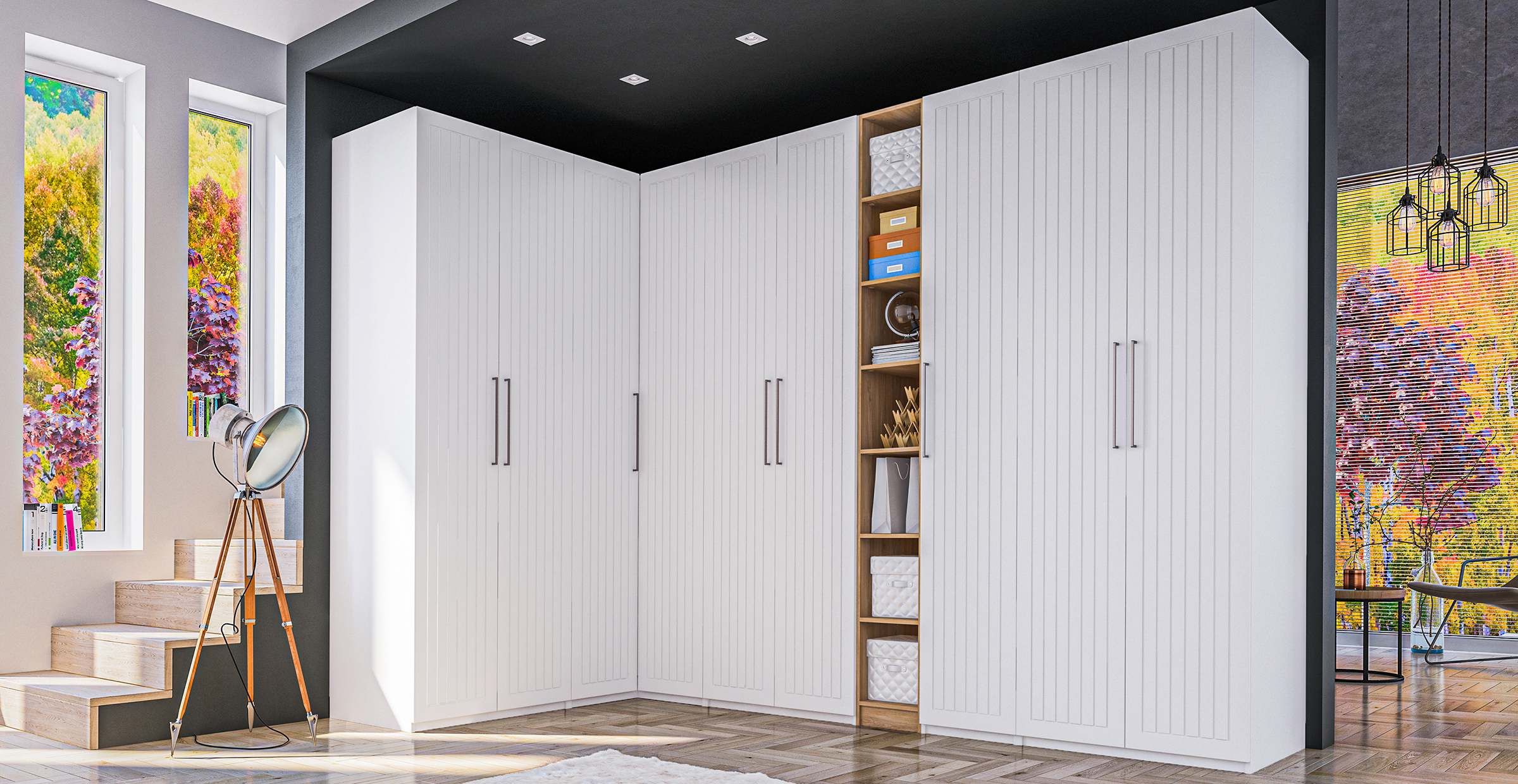 Размер: 1200х500х2202 мм. Материал: ЛДСП/наборные планки МДФ, рамка МДФ.