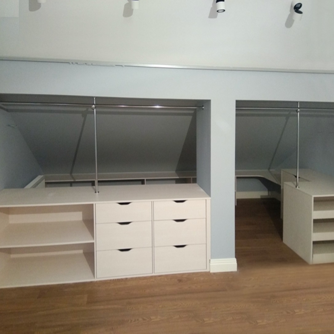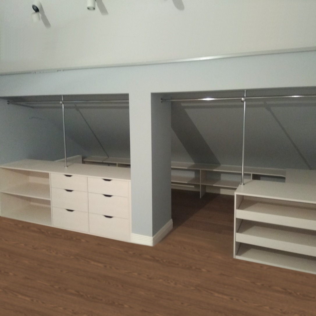 Владельцы домов знают, что одно из самых сложных для обустройств мест — мансарда. В этом проекте мы решили задачу рационального размещения систем хранения в мансардном помещении.