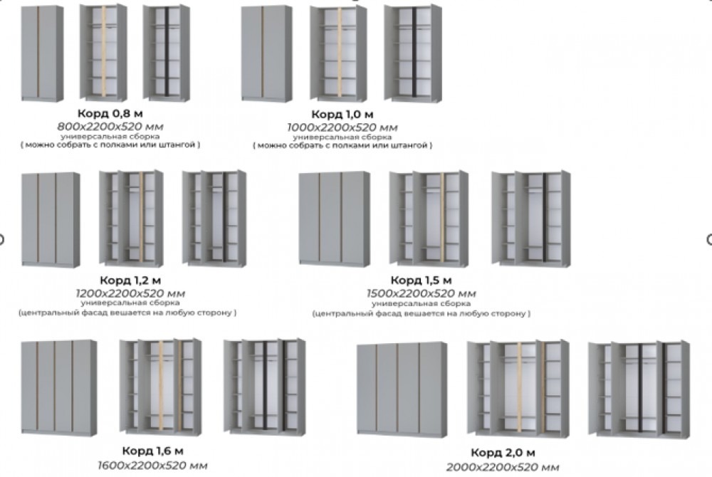 Шкафы «Корд» 0,8м 1,0м 1,2м 1,5м 1,6м 2,0м