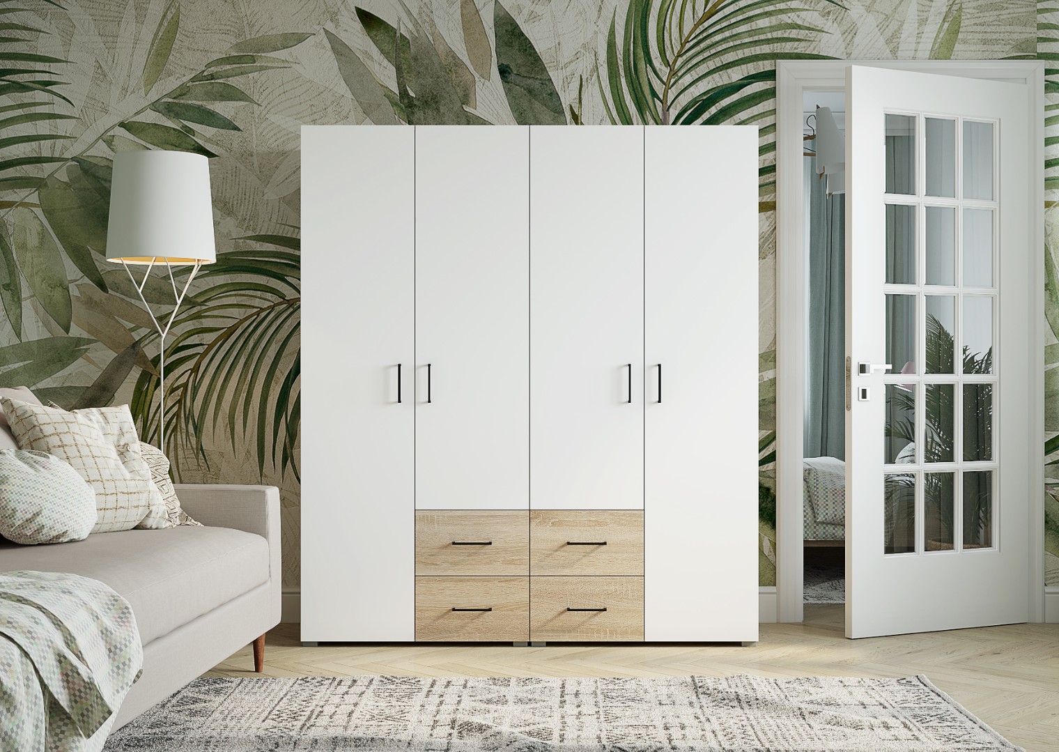 Комплект шкафов «Victor» в оттенке Сонома/Белый состоит из нескольких элементов, которые можно разместить в гостиной, спальне или прихожей.