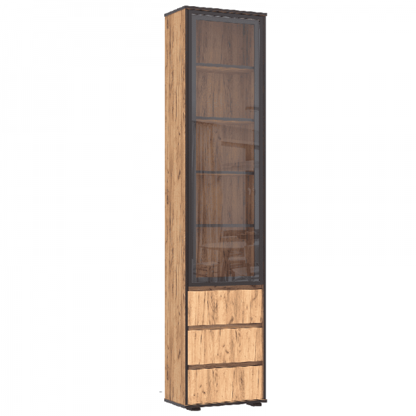 Пенал-стекло «Норд» с ящиками (Дуб Карфт Серый - Кашемир)