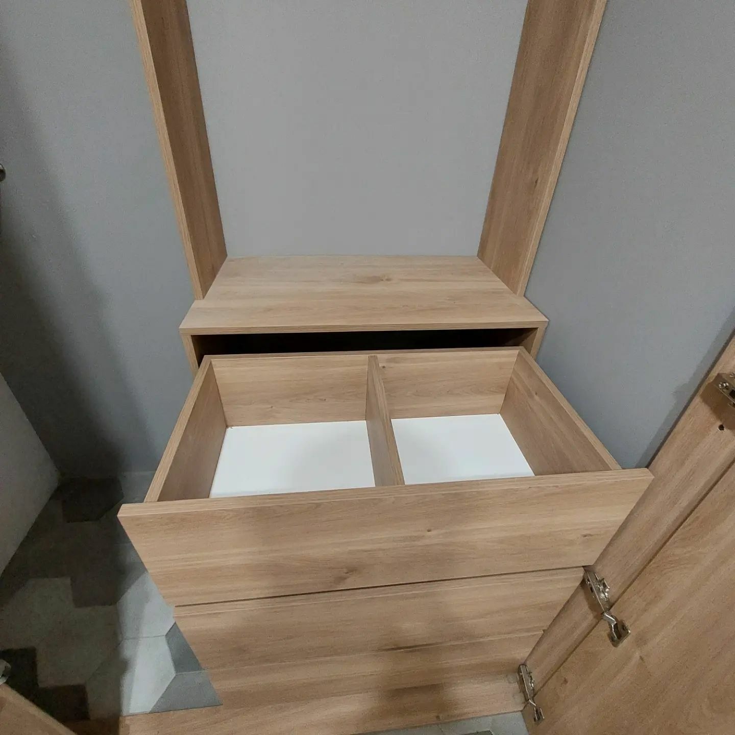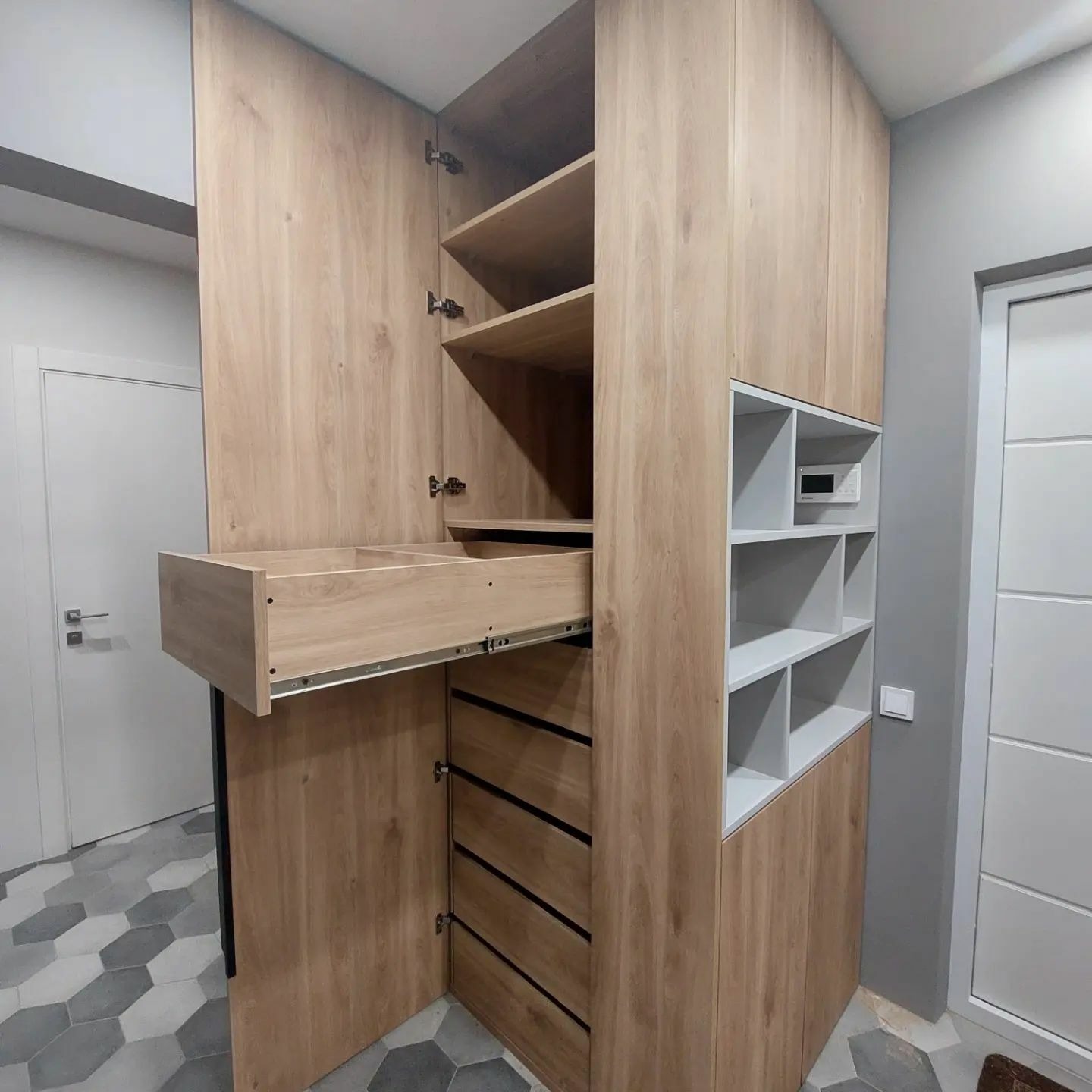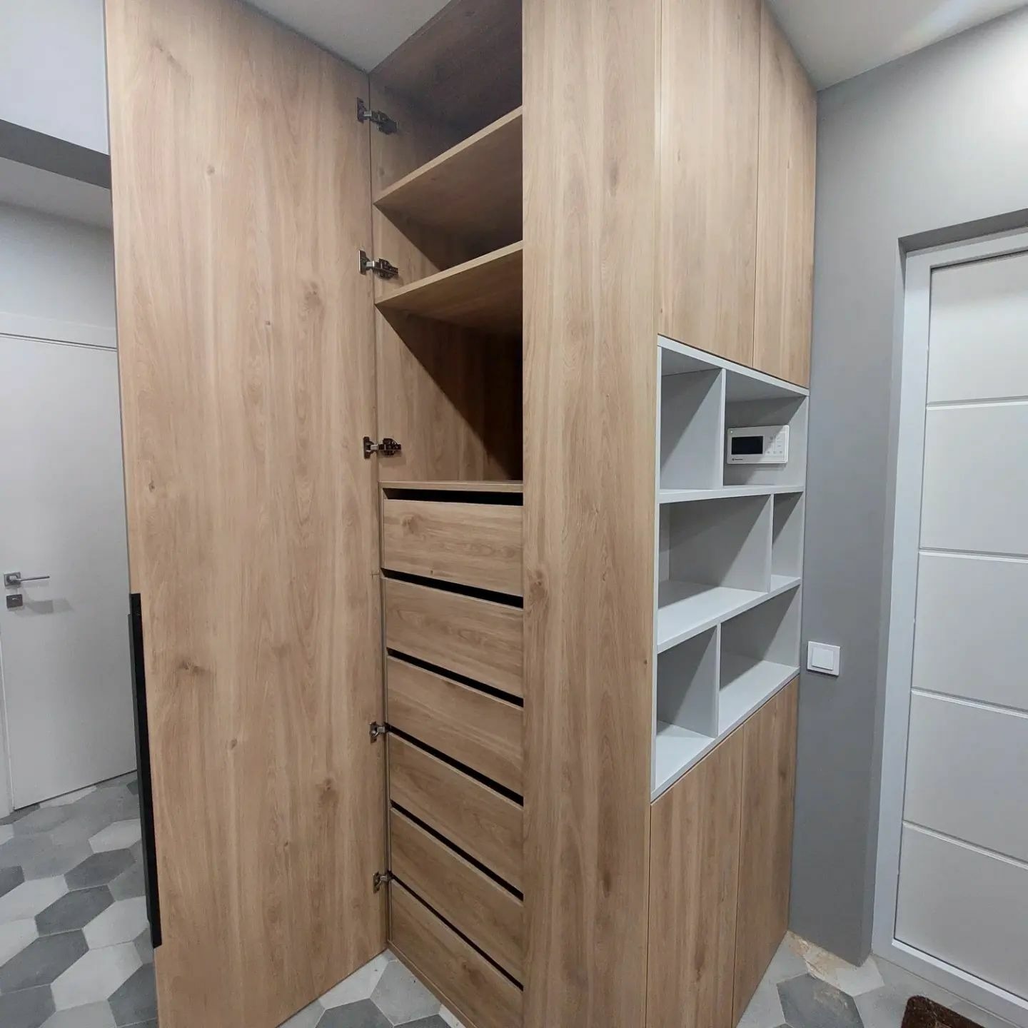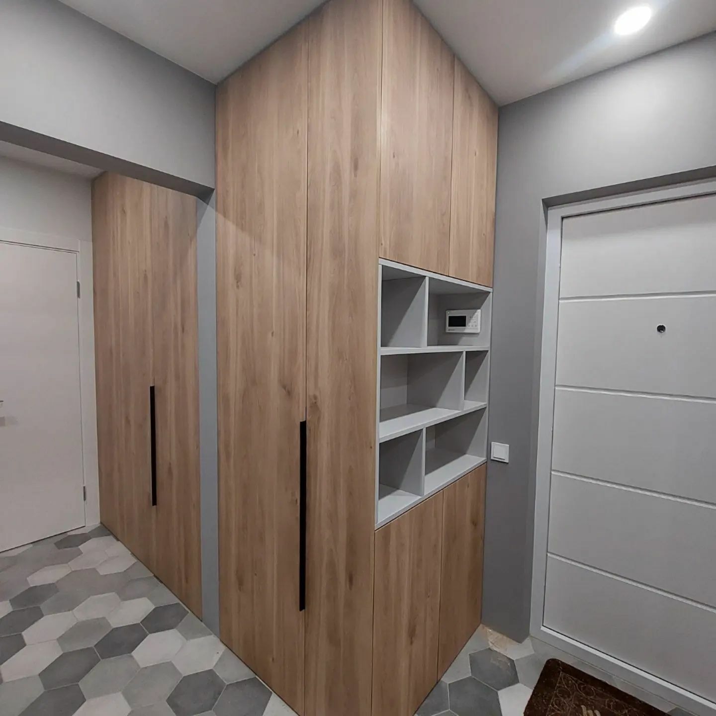 Встроенные распашные шкафы с нишей серого цвета