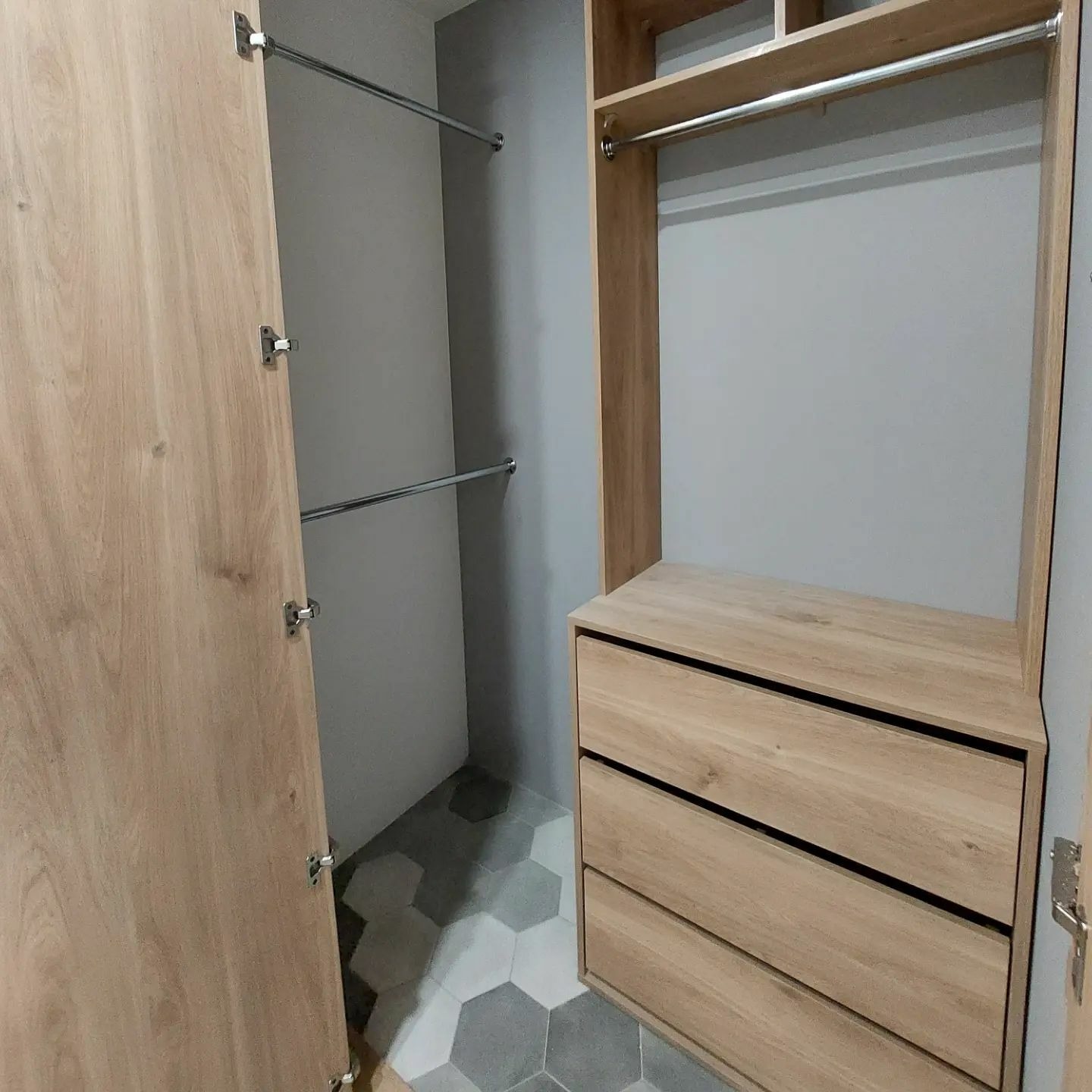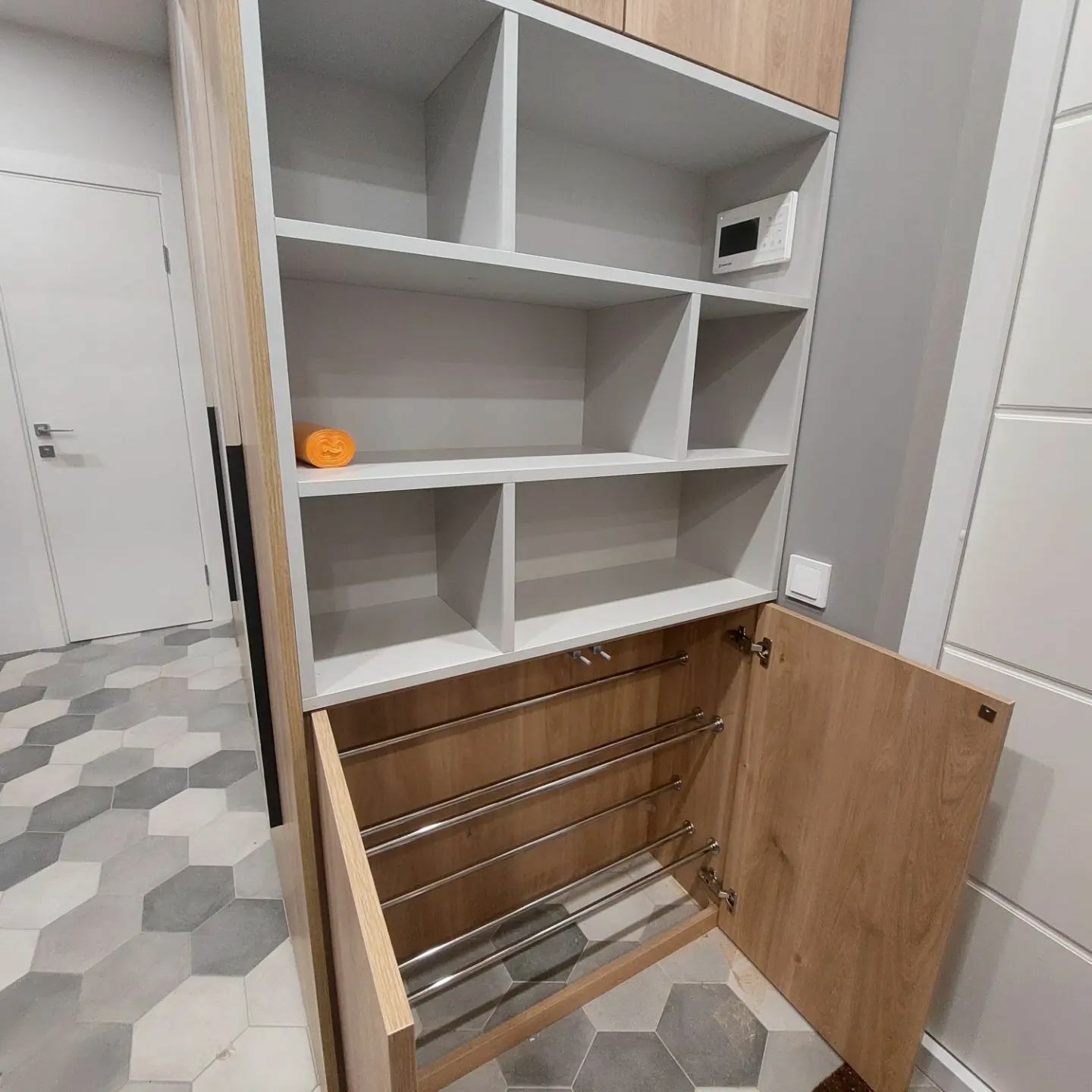 Левая секция оборудована штангой и антресолью.