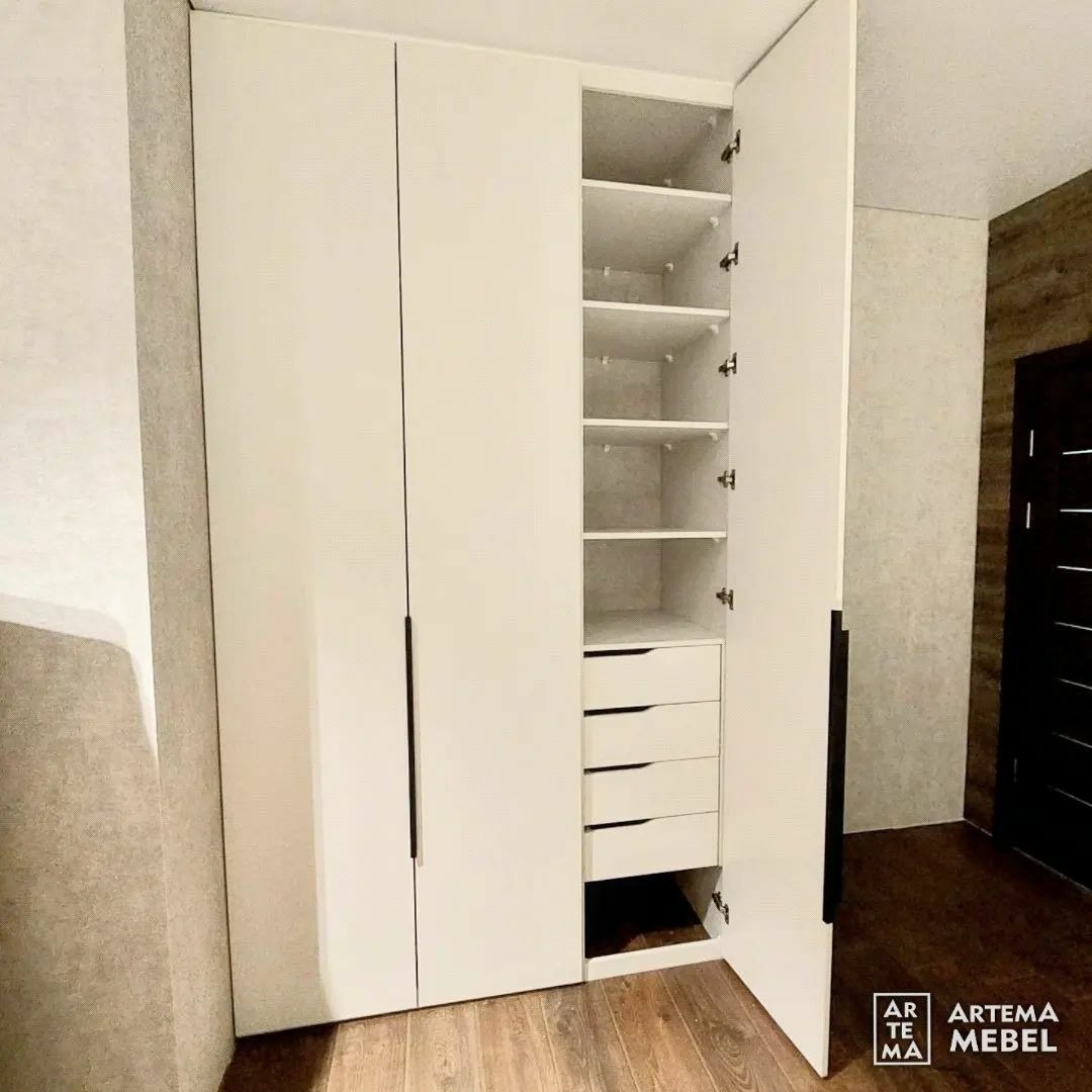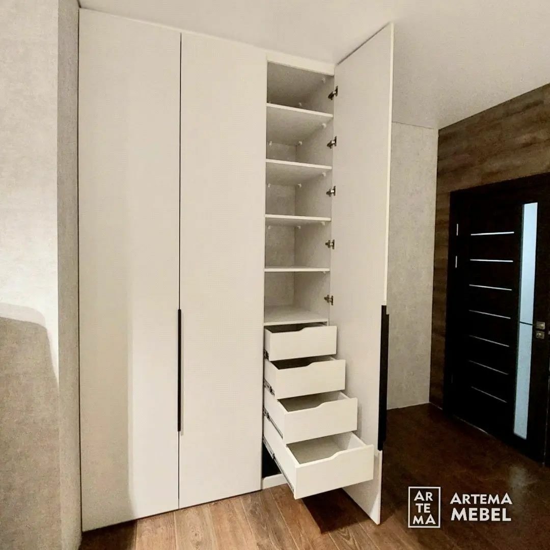 Наличие больших зеркал. Штанги для верхней одежды, выдвижные ящики и полки.
