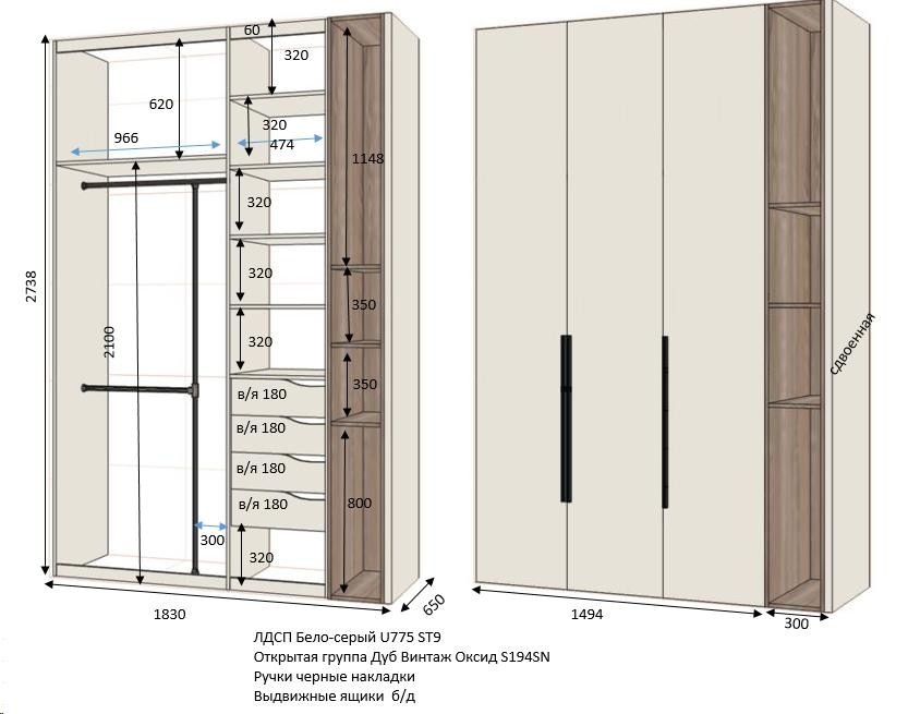 Размер: 2538х510х2654 мм. Материал: ЛДСП.