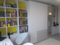 Распашные шкафы, выдвижные ящики, антресоль, удобное рабочее место.