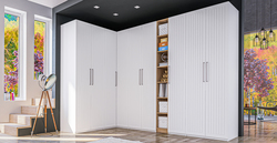 Шкаф исполнен в белом цвете. Фасады: МДФ ПВХ с фрезеровкой.