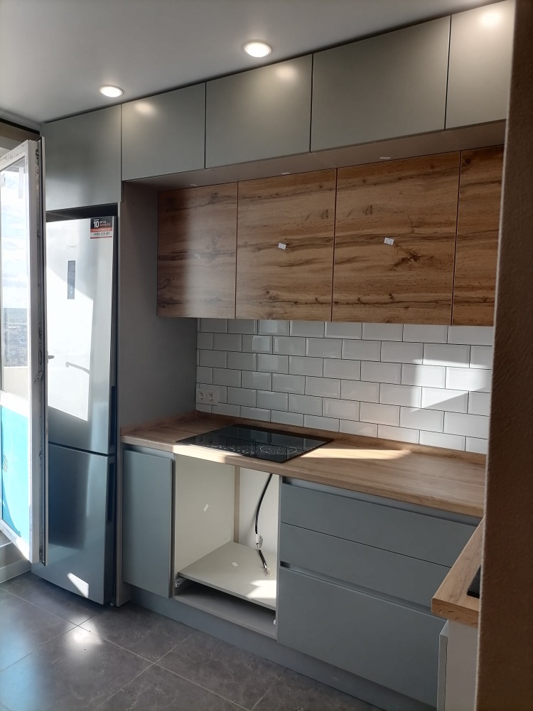 Замена кухонных фасадов с покраской и заменой цвета, изготовление недостающих элементов,