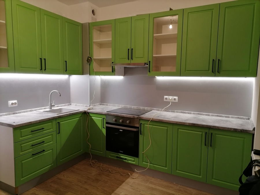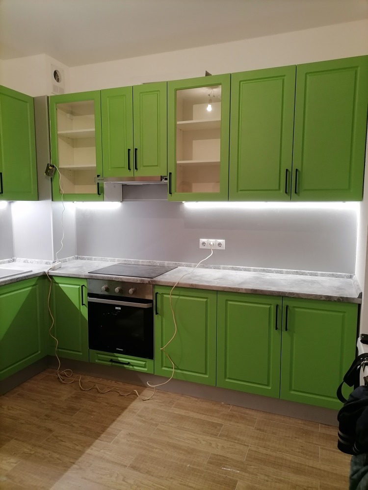 Замена кухонных фасадов с покраской и заменой цвета, изготовление недостающих элементов,