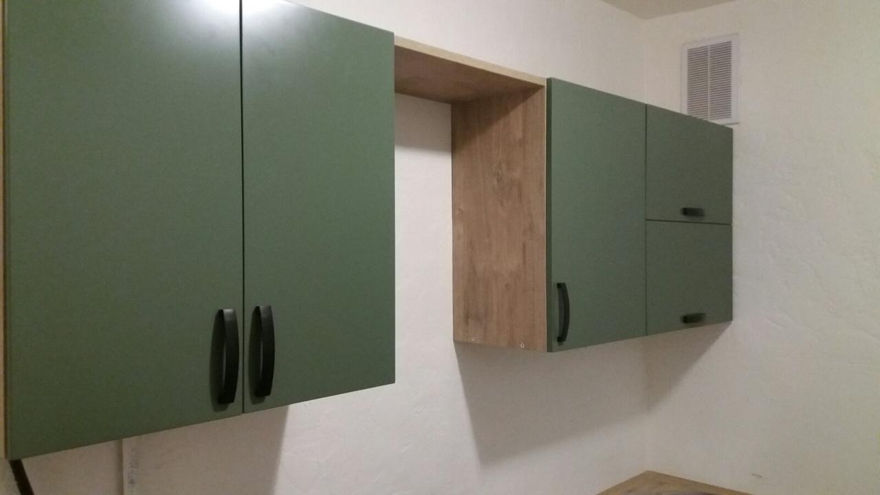 Замена кухонных фасадов с покраской и заменой цвета, изготовление недостающих элементов,