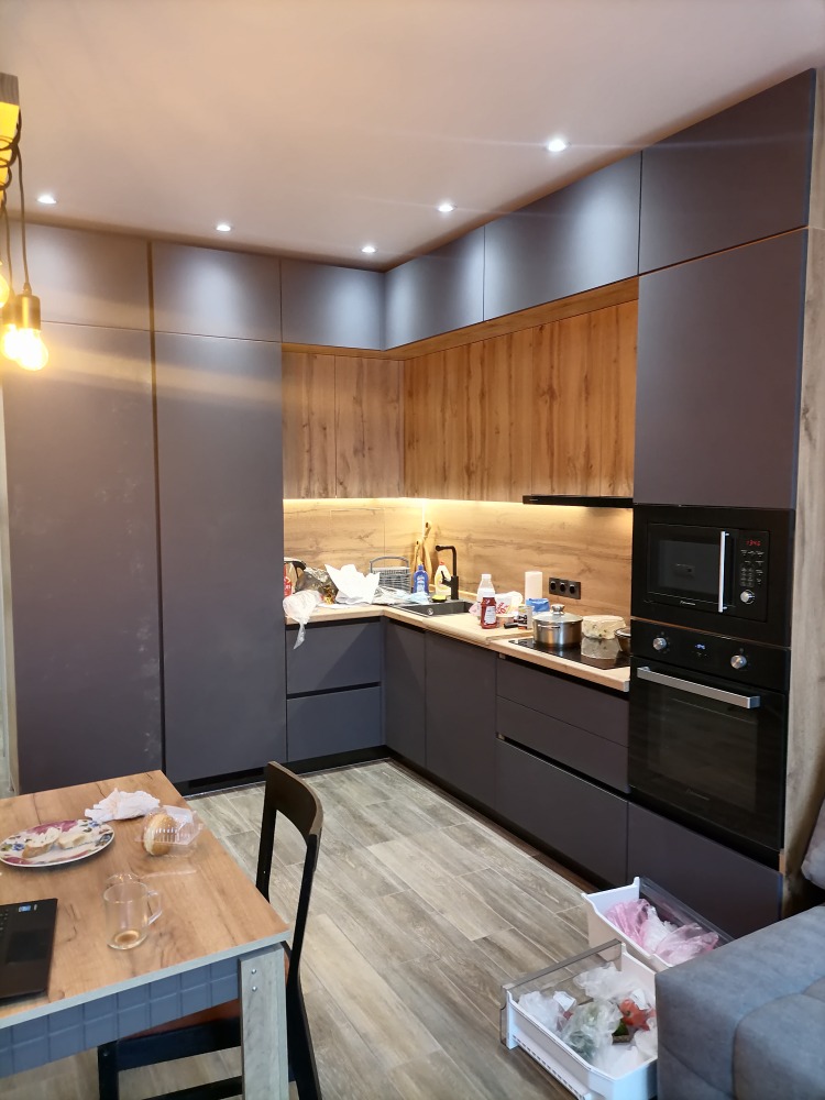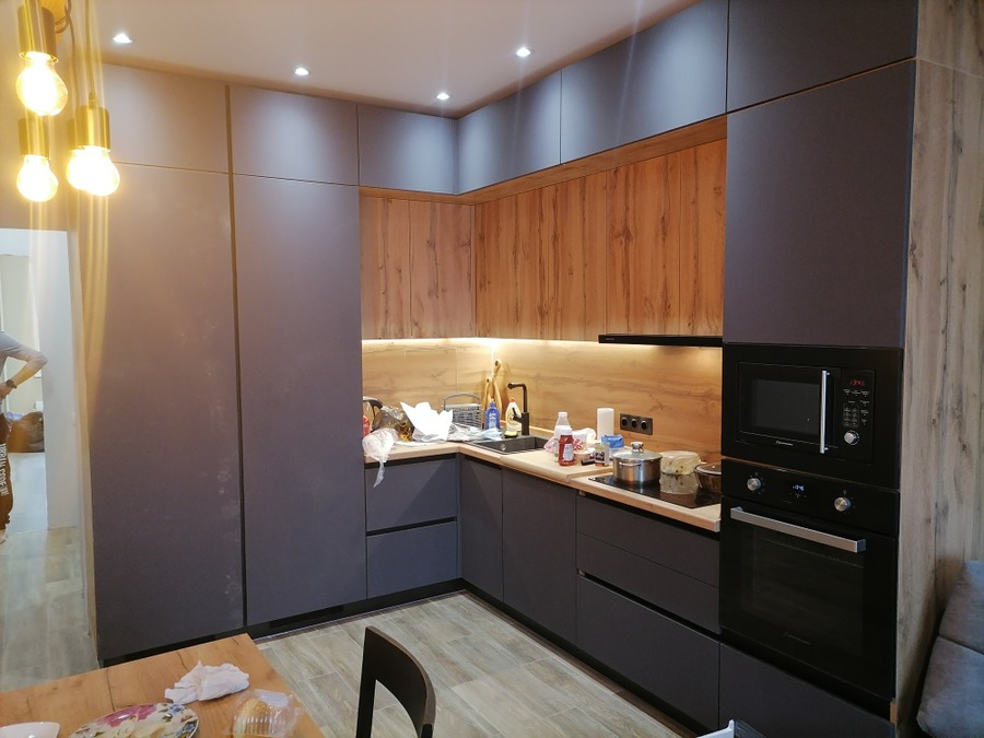 Замена кухонных фасадов с покраской и заменой цвета, изготовление недостающих элементов,