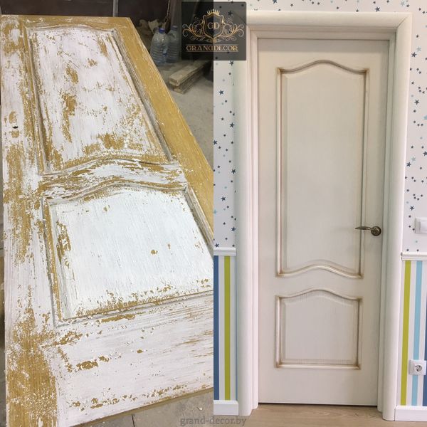 Для восстановления двери наши мастера тщательно подготовили поверхность, окрасили и покрыли все защитными лаками. Все изъяны и дефекты были устранены. Дверь установлена на новые петли.