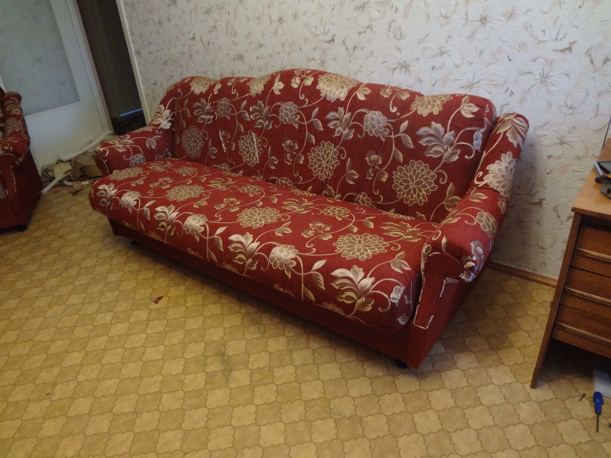 Профессионалом выполнена перетяжка дивана. Работа выполнена за один день.