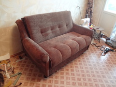Ремонт и перетяжка набора мягкой мебели «Лакнея». Замена обивки кресла и дивана.