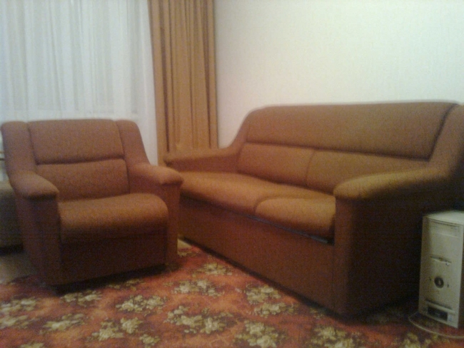 код 90492Ремонт и перетяжка набора мягкой мебели «Лакнея». Замена обивки кресла и дивана.