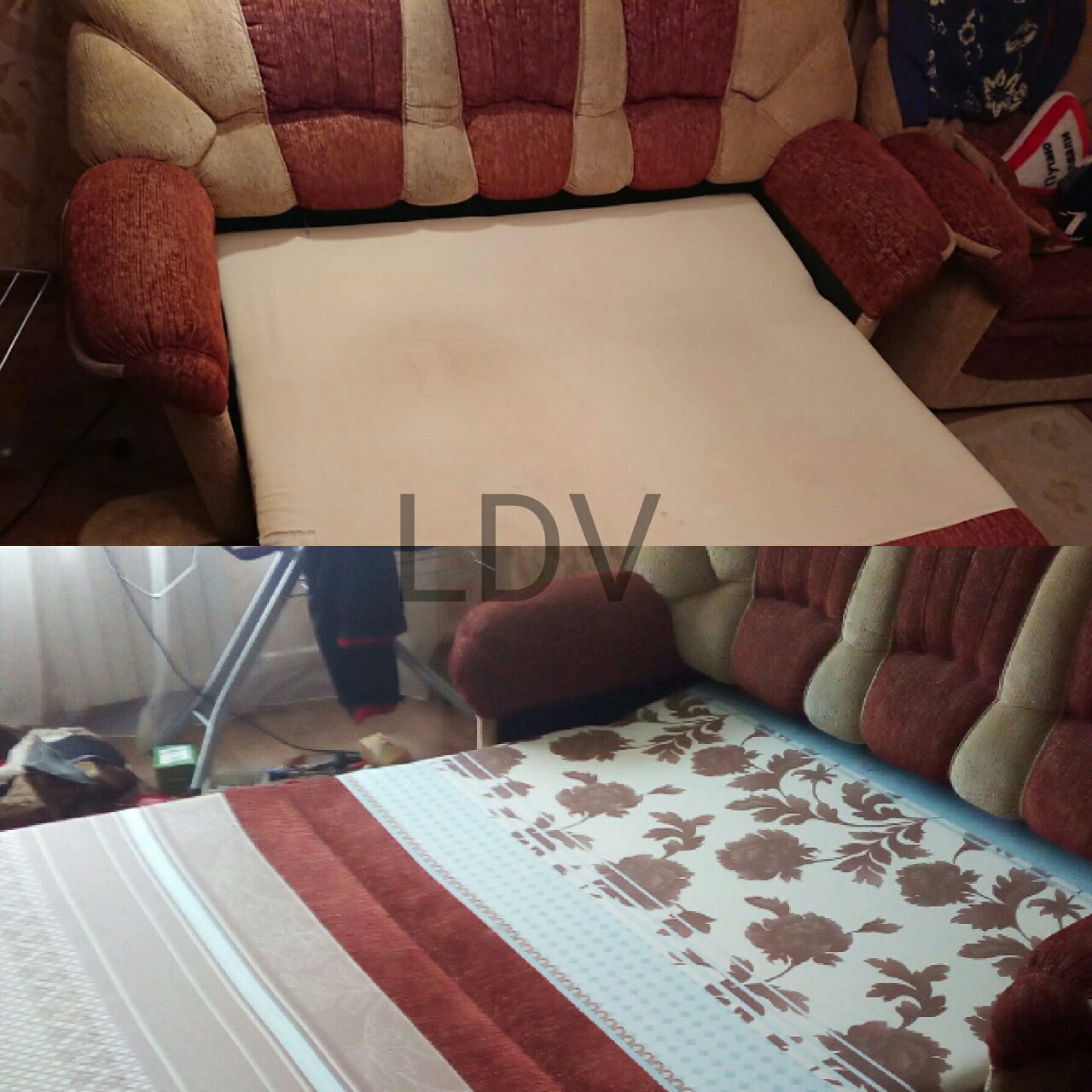 Профессионалом выполнена перетяжка дивана. Работа выполнена за один день.
