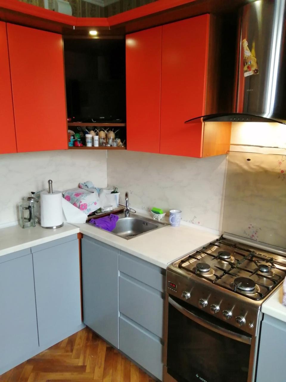 Замена фасадов кухни, установка современной фурнитуры. Стойкие материалы и краски.