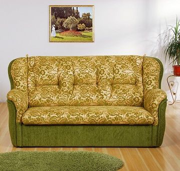 Реконструкция дивана в золотисто-салатовом цвете