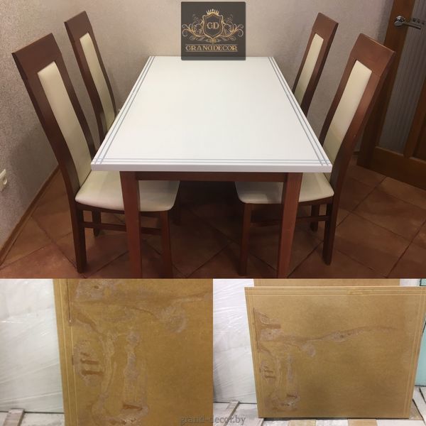 Старая и давно полюбившаяся столешница потеряла свой первоначальный вид. В первую очередь наши мастера предварительно подготовили поверхность столешницы: устранили все царапины, трещины и потертости, тщательно отшлифовали и приступили к покраске. Белый цвет столешницы визуально придал ей легкости, увеличил в размерах и идеально вписал в интерьер кухни.