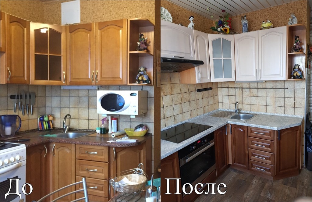 Реставрация и покраска плёночных фасадов кухни МДФ