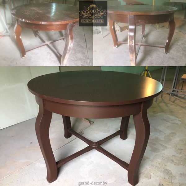 С помощью шлифовки всей поверхности стола и последующией его покраски с нанесение защитных лаков, наши мастера достигли результата. Удалось избавиться от всех дефектов и потертостей, конструкция стала надежной и устойчивой.