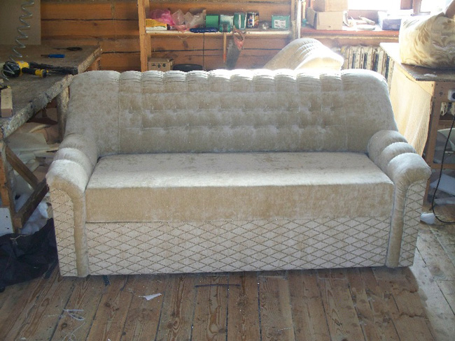 Профессионалом выполнена перетяжка дивана. Работа выполнена за один день.