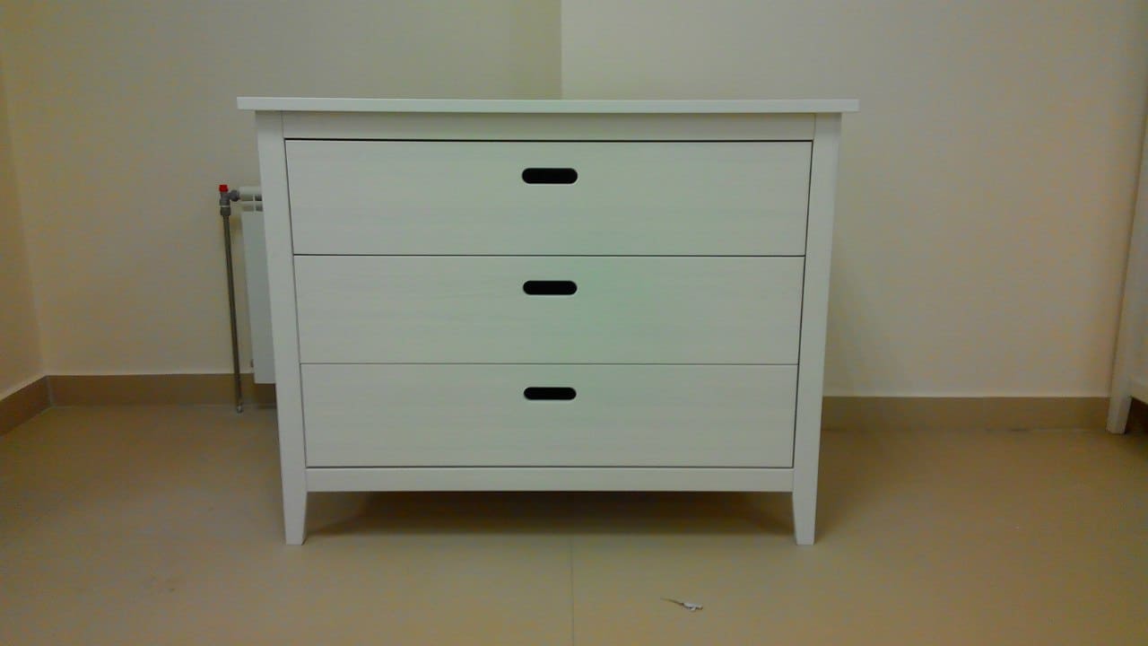 Выполнена профессиональная сборка белого комода с тремя вместительными ящиками.