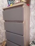 Собрана прикроватная тумба с пластиковыми накладками поверх корпуса из массива.