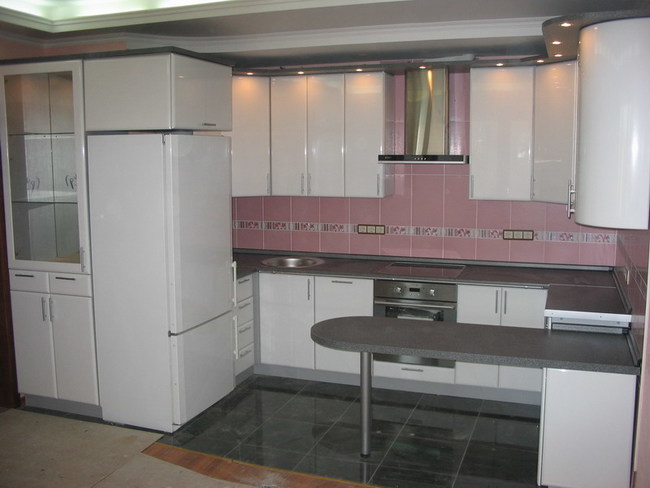 Монтаж кухни с радиусным фасадом