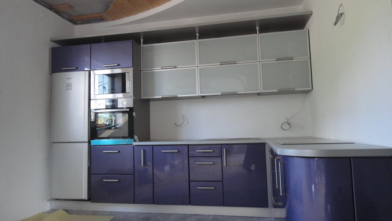Глянцевый Г-образный модуль. Широкая тумба под ТВ с комодом.