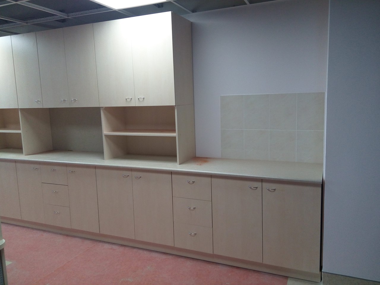 Установлена угловая кухня с длинным нижним фасадом и несколькими навесными модулями.