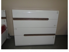 Белая глянцевая горка с туалетным столиком и навесными модулями.