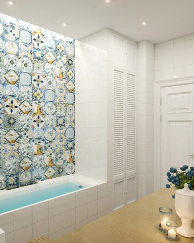 Шкаф с жалюзийными дверцами из массива встроен в нишу ванной комнаты. Изделие окрашено в белый цвет и оборудовано маленькими круглыми ручками на фасаде. Классический дизайн позволяет шкафу сливаться с окружающей обстановкой, не притягивая к себе особого внимания. Модель обладает приличной вместительностью и позволяет размещать большое количество полотенец и белья.