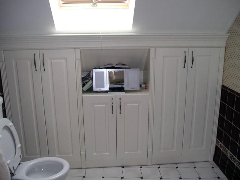 Стена состоит из одних дверок, они выполнены без ручек, открываются от нажатия tip-on.