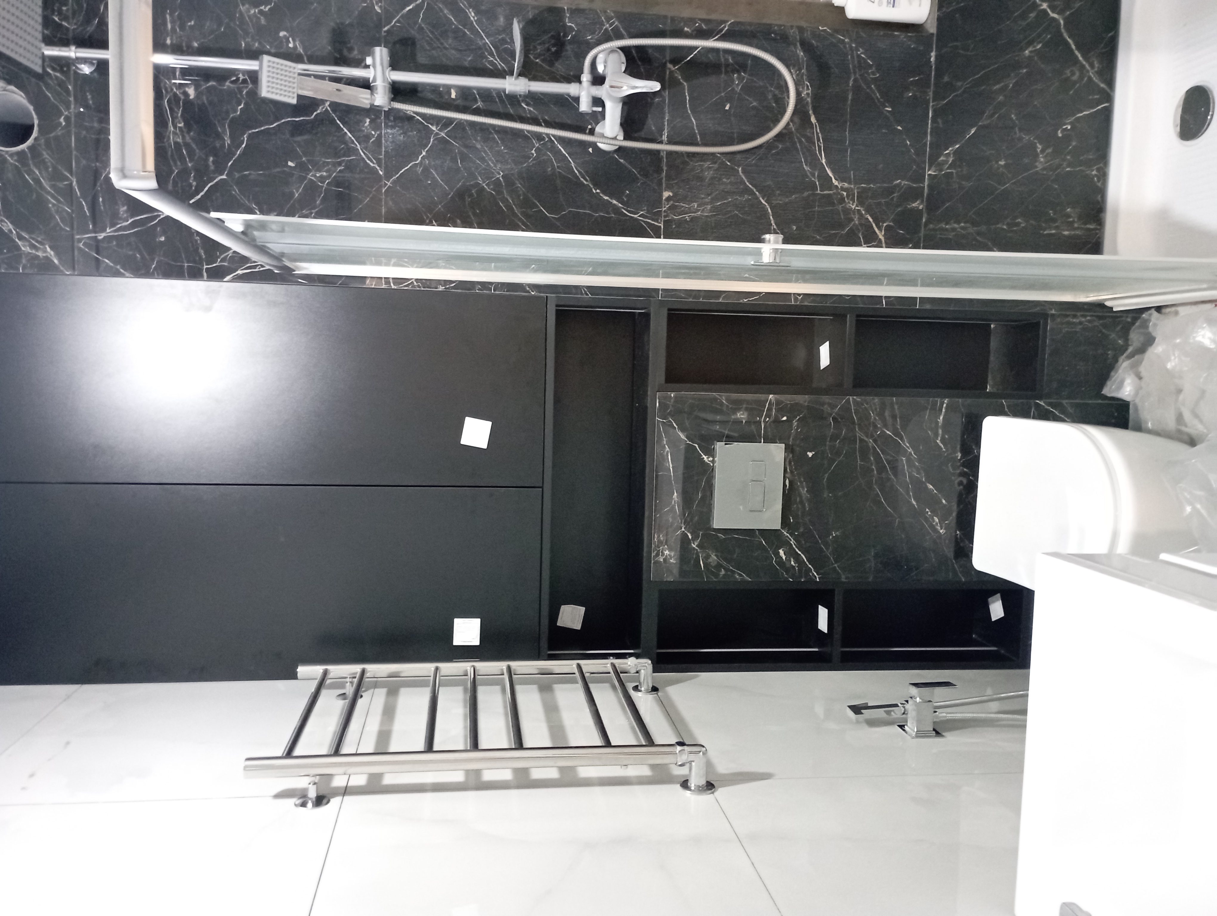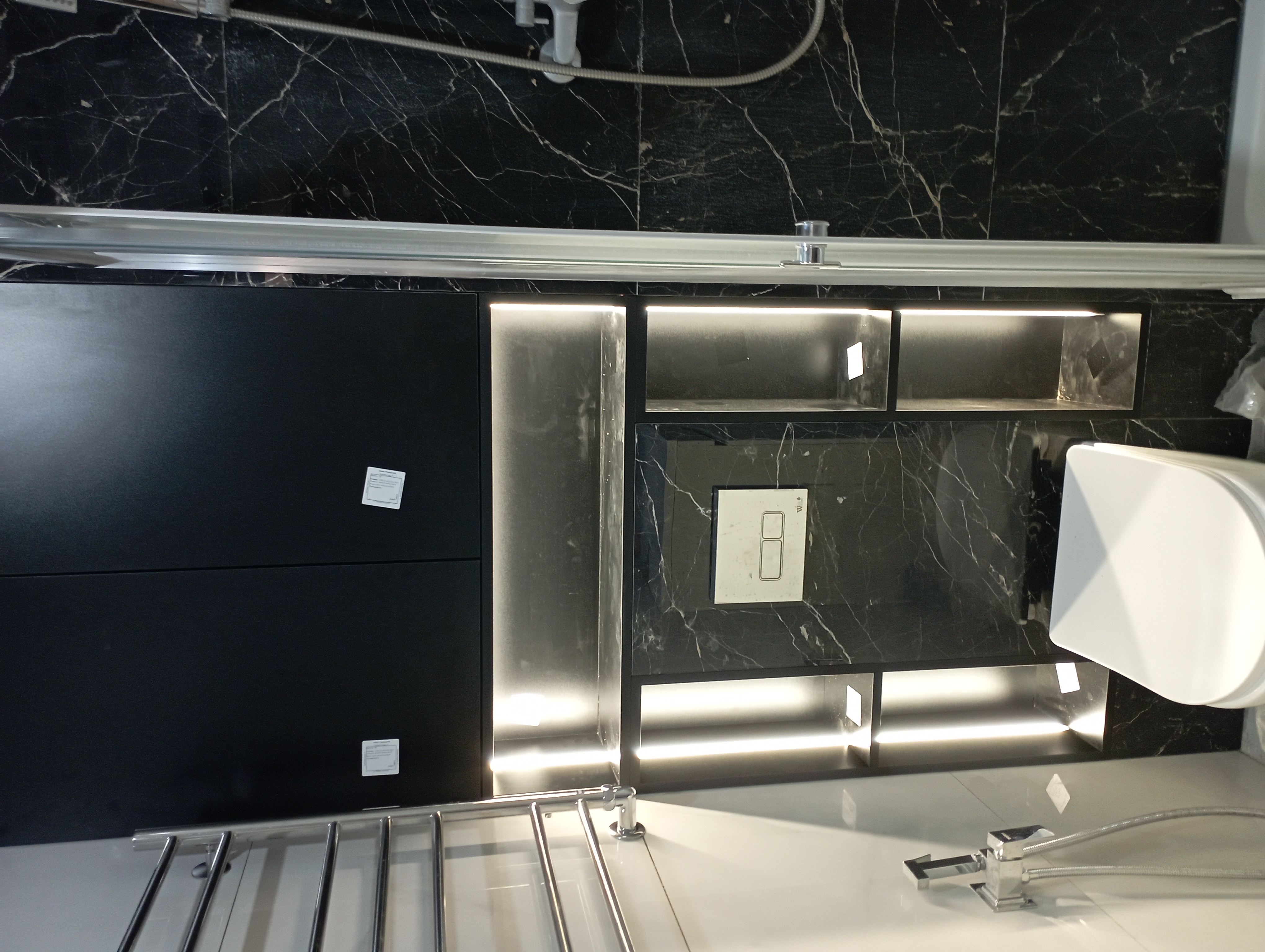Зашивка-шкаф над инсталляцией в туалет