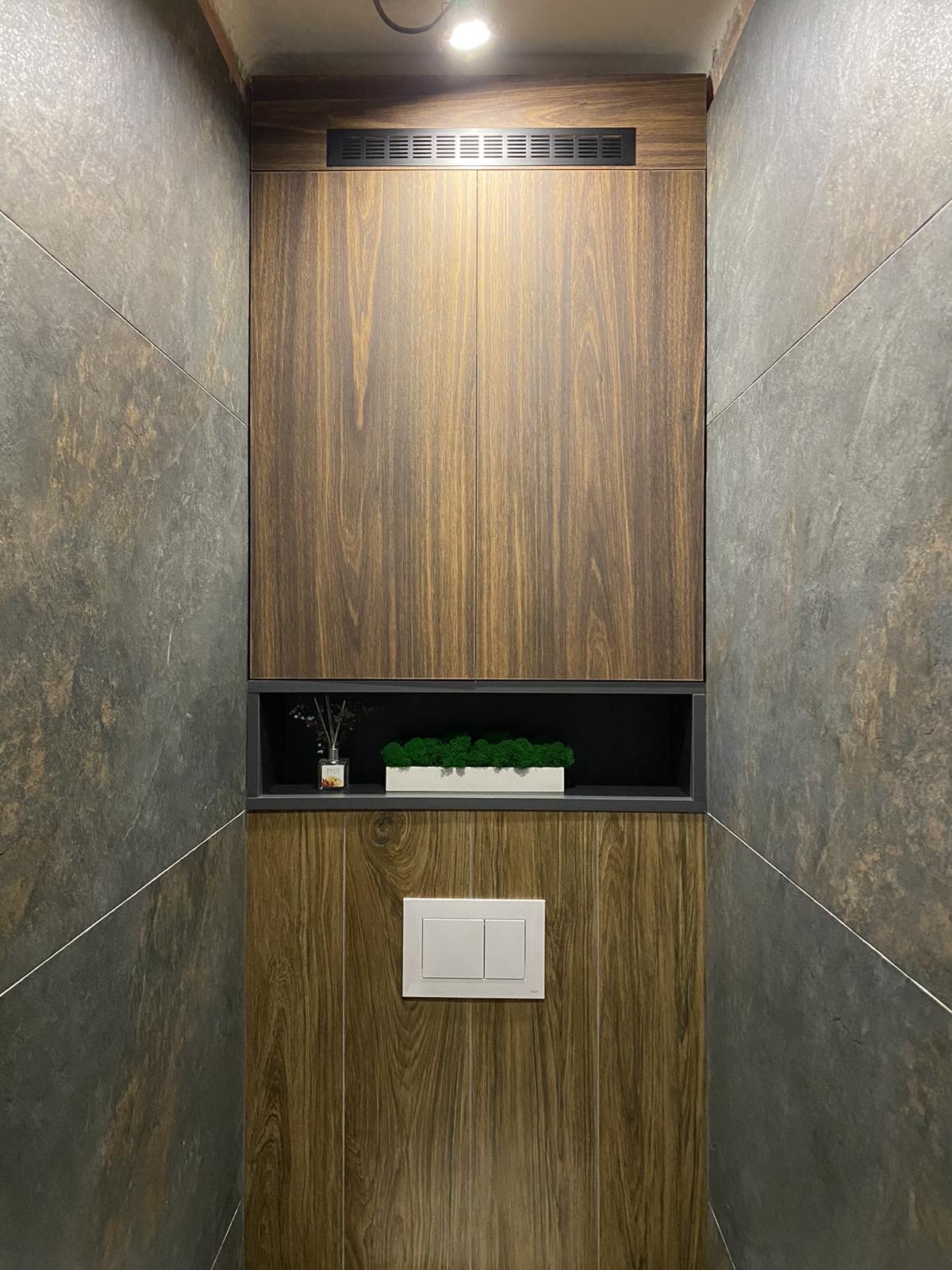 Стена состоит из одних дверок, они выполнены без ручек, открываются от нажатия tip-on.