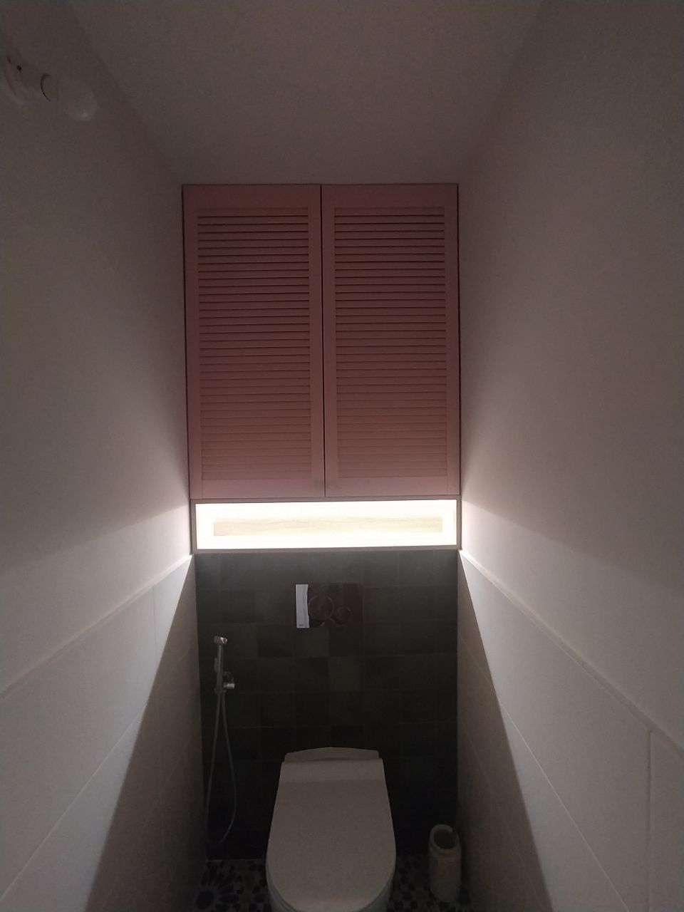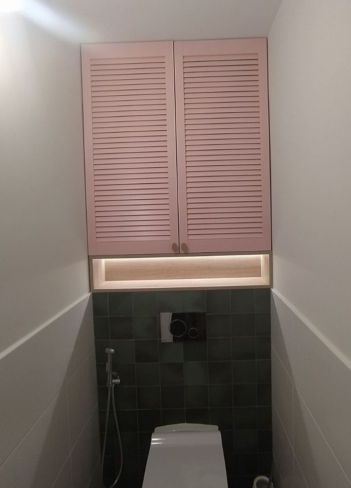 Шкаф с жалюзийными дверями из натуральной сосны в санузел