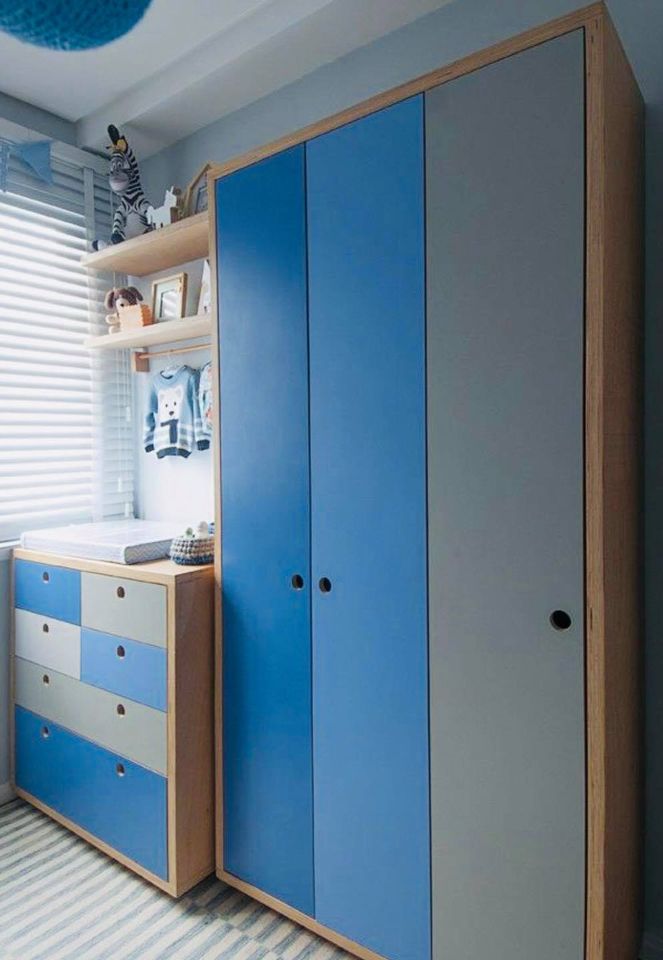 Комбинированные цвета. Вместительный трехдверный шкаф для одежды.