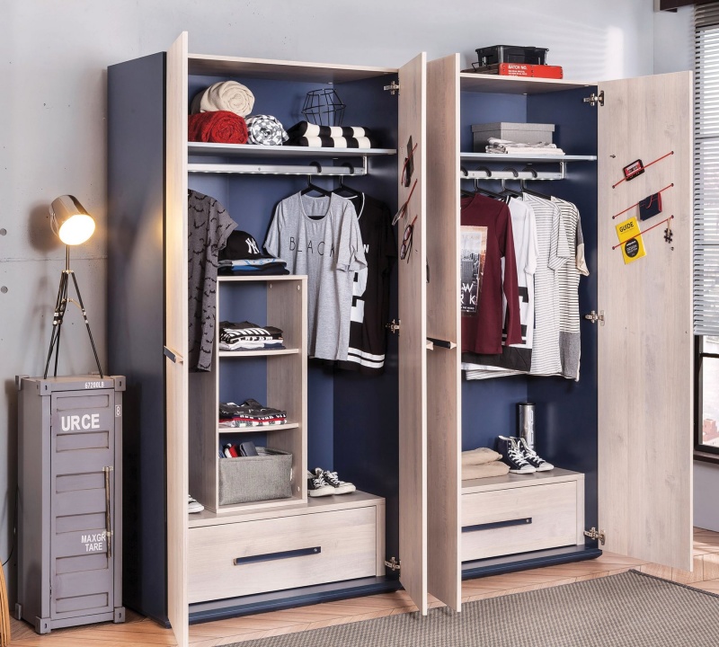 Вместительный угловой шкаф Мика имеет две зоны хранения.