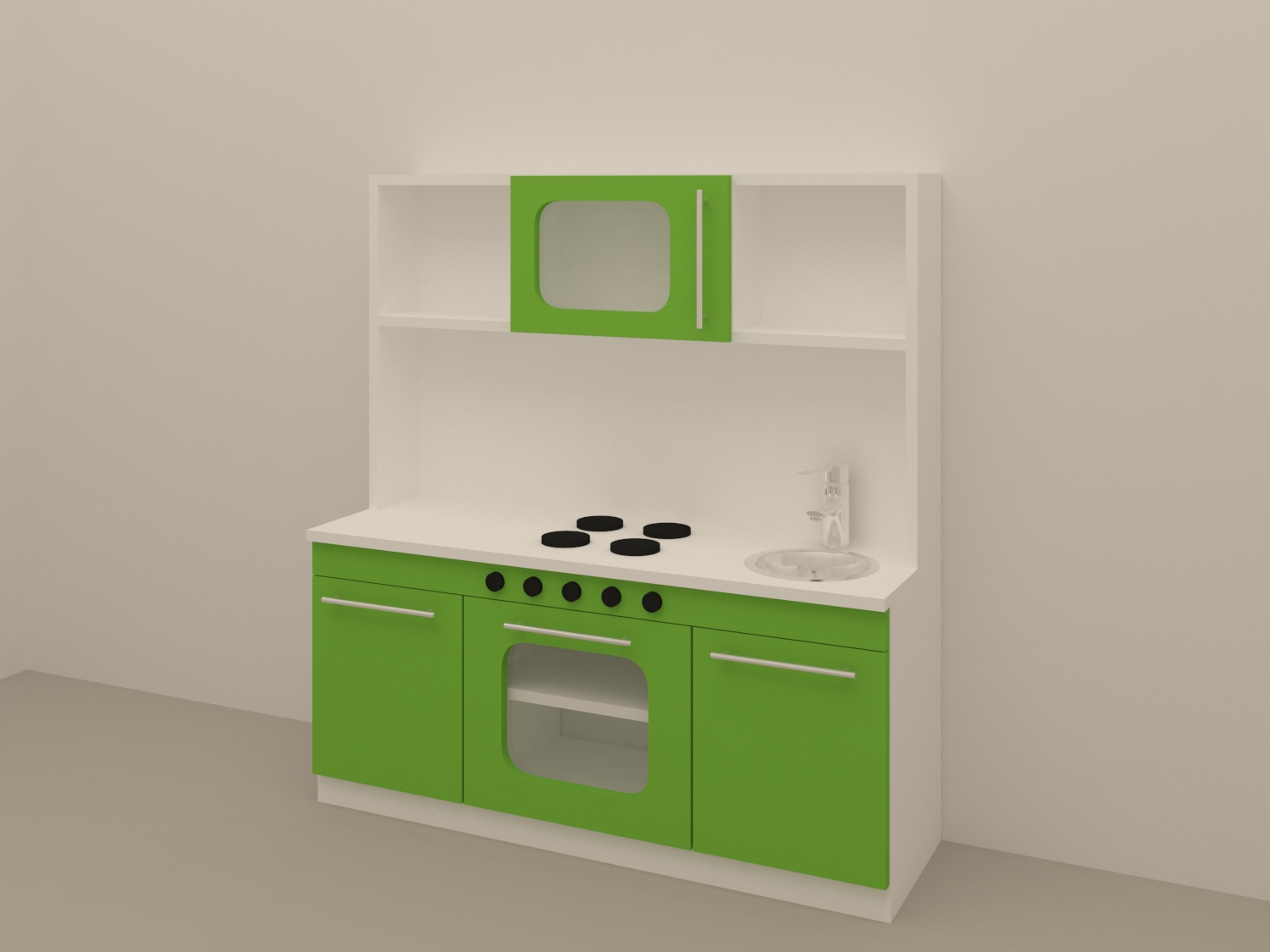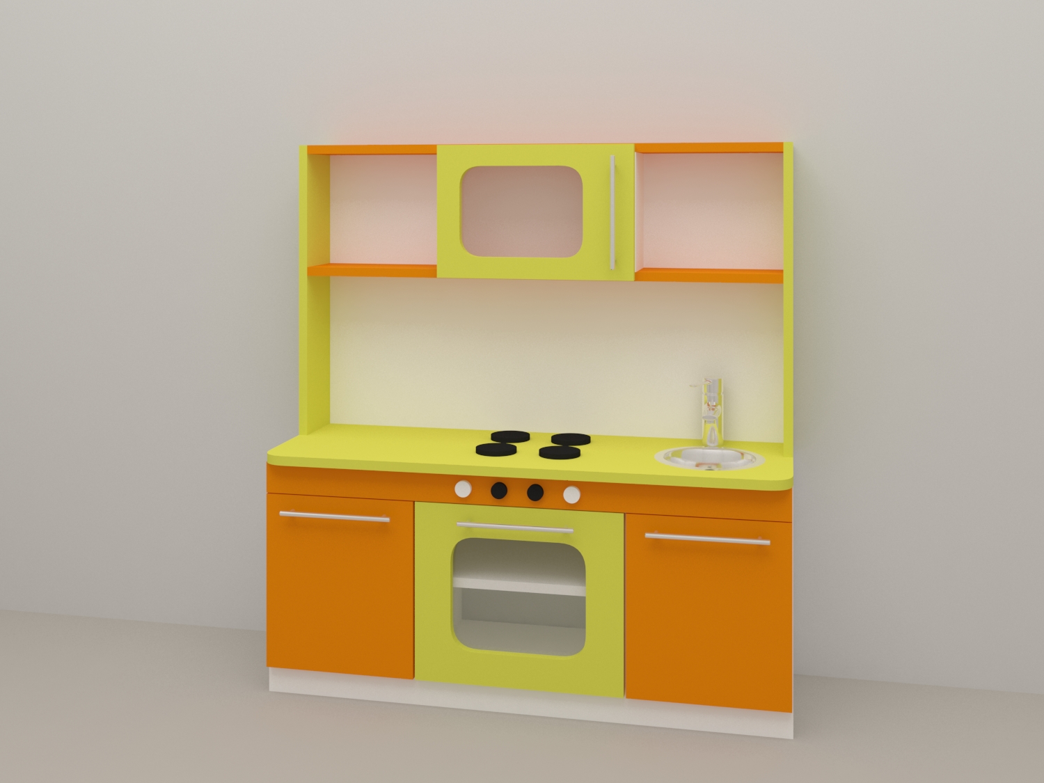 Игровая мебель подходящего для малышки размера полностью повторяет привычный кухонный антураж: выдвигающиеся шкафчики, открывающиеся дверцы, подвесные держатели для посуды, холодильник, плита, духовка и даже раковина. Некоторые модели содержат также стиральную машину или барную стойку. Проработанная детальность увлекает ребёнка на долгое время и позволяет детской фантазии каждый раз придумывать новые варианты игры.