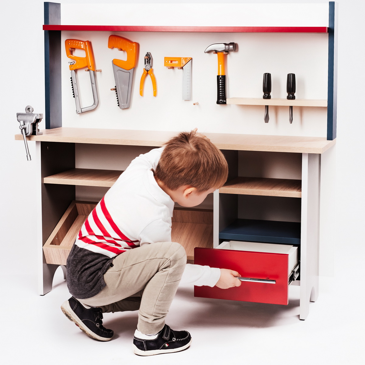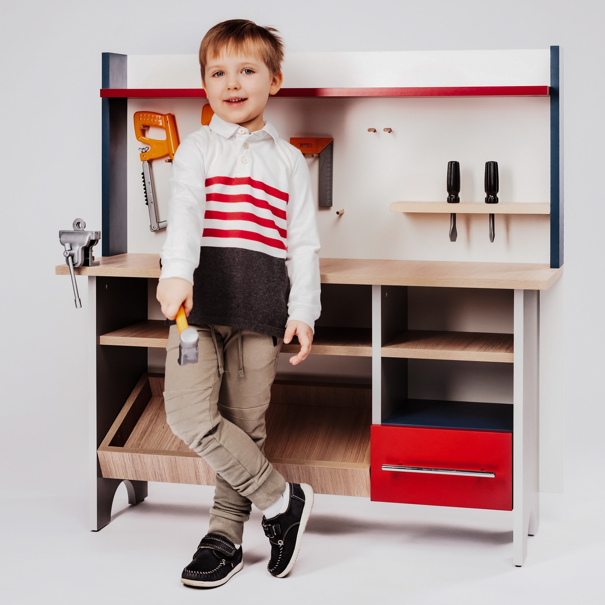 Набор детской мебели «Мастерская» содержит всё необходимое для воспитания маленького мастера на все руки.