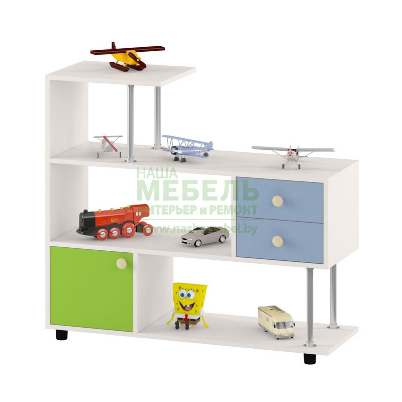 Состоит из 3-секций: штанги для одежды; полки открытые/закрытые, выдвижные ящики; закрытые полки