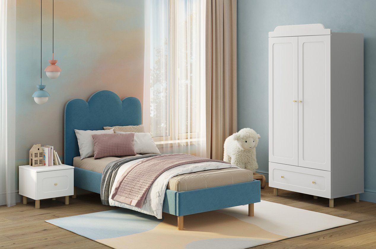 Двухдверный распашной шкаф «Велди-2» — идеальное решение для детской комнаты, сочетающее в себе практичность, комфорт и спокойный визуальный стиль. Светлый оттенок фасадов создает ощущение уюта и гармонии, а аккуратная фрезеровка придаёт изделию выразительность и делает его эстетичным элементом интерьера.