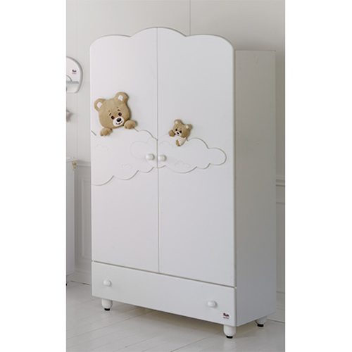 Белое исполнение шкафа сделает атмосферу в детской комнате мягкой и спокойной. Модель украшена плюшевым медвежонком, который добавит нотку игривости и веселья. Шкаф изготовлен из безопасных материалов, не способных нанести вред ребенку.
