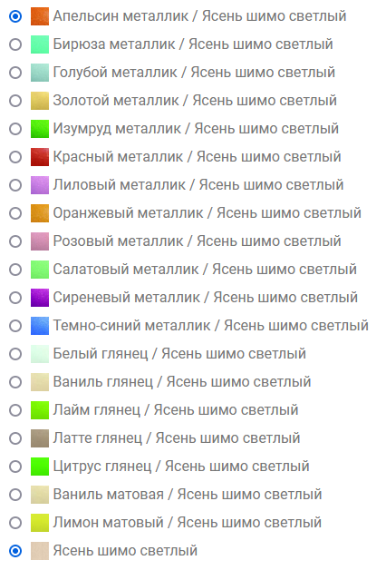Возможное цветовое исполнение фасад/корпус: см. фото