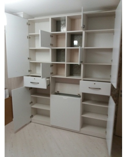 Многофункциональная стенка обладает уникальной функцией замыкания под ключ некоторых ящиков, что позволяет не беспокоиться о сохранности вещей или документов. Полочки разных размеров, поэтому в них можно положить предметы различной размерности.